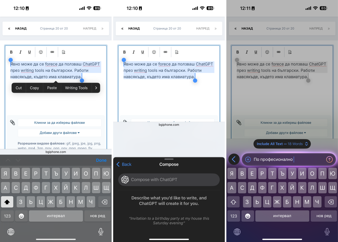 Написано с Apple Intelligence + интеграция на CahtGPT директно на български: