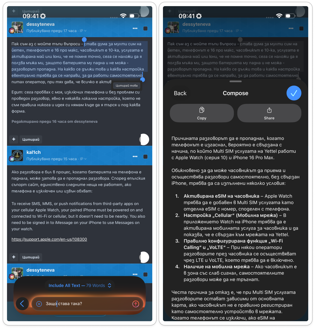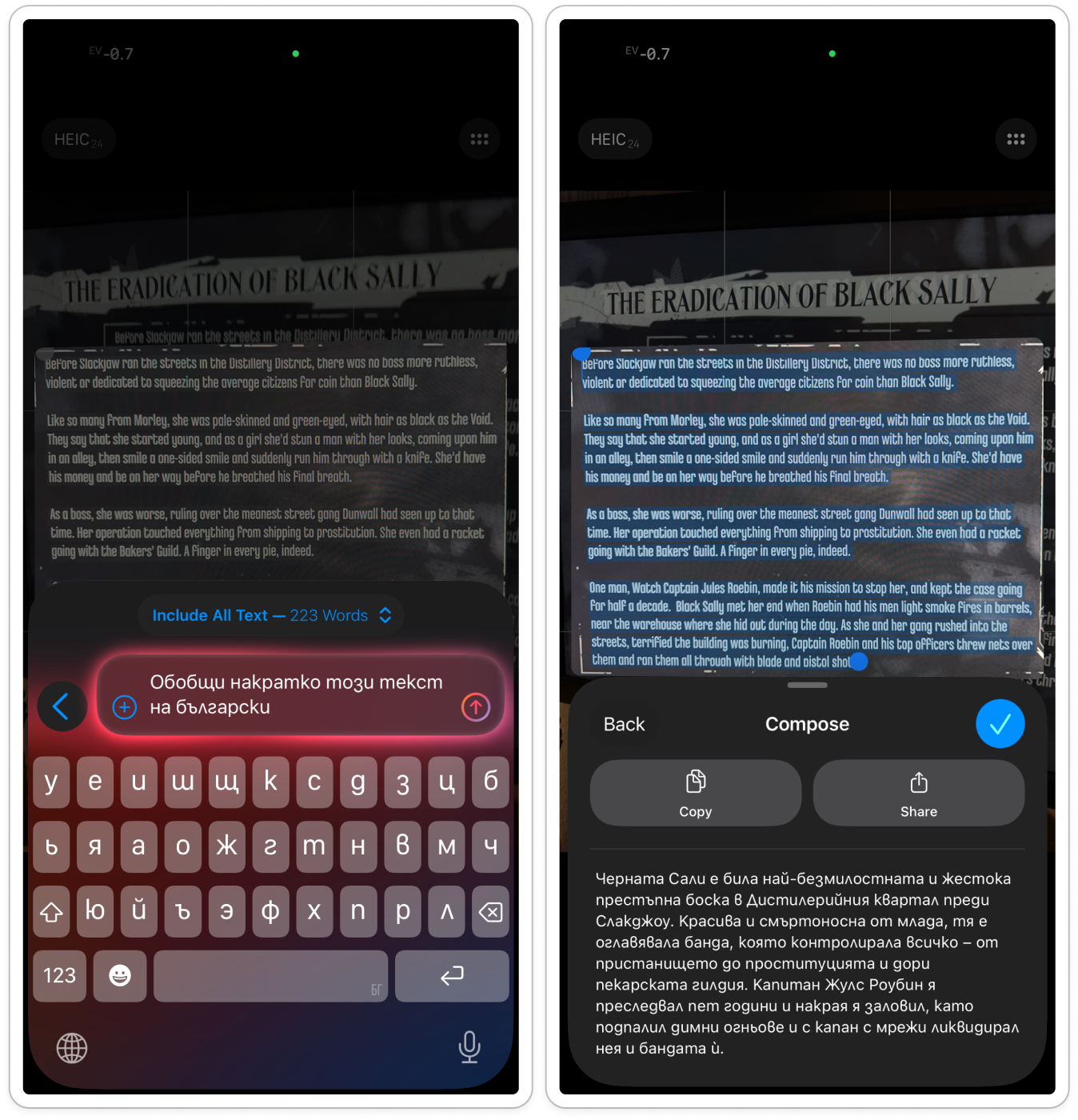 Ето още няколко примера как да работим с Apple Intelligence на български с интеграцията му с ChatGPT директно в телефона, без да отваряме аппа директно.